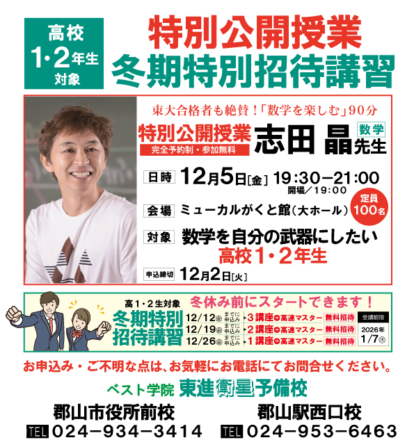 【ベスト学院東進衛星予備校】特別公開授業~東大合格者も絶賛!志田先生による特別授業