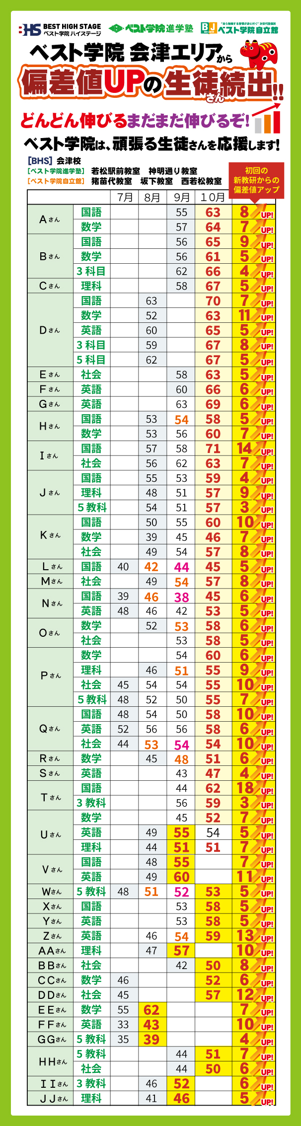 ベスト学院会津エリア「偏差値アップ続出!ベスト学院の成果をご紹介!」