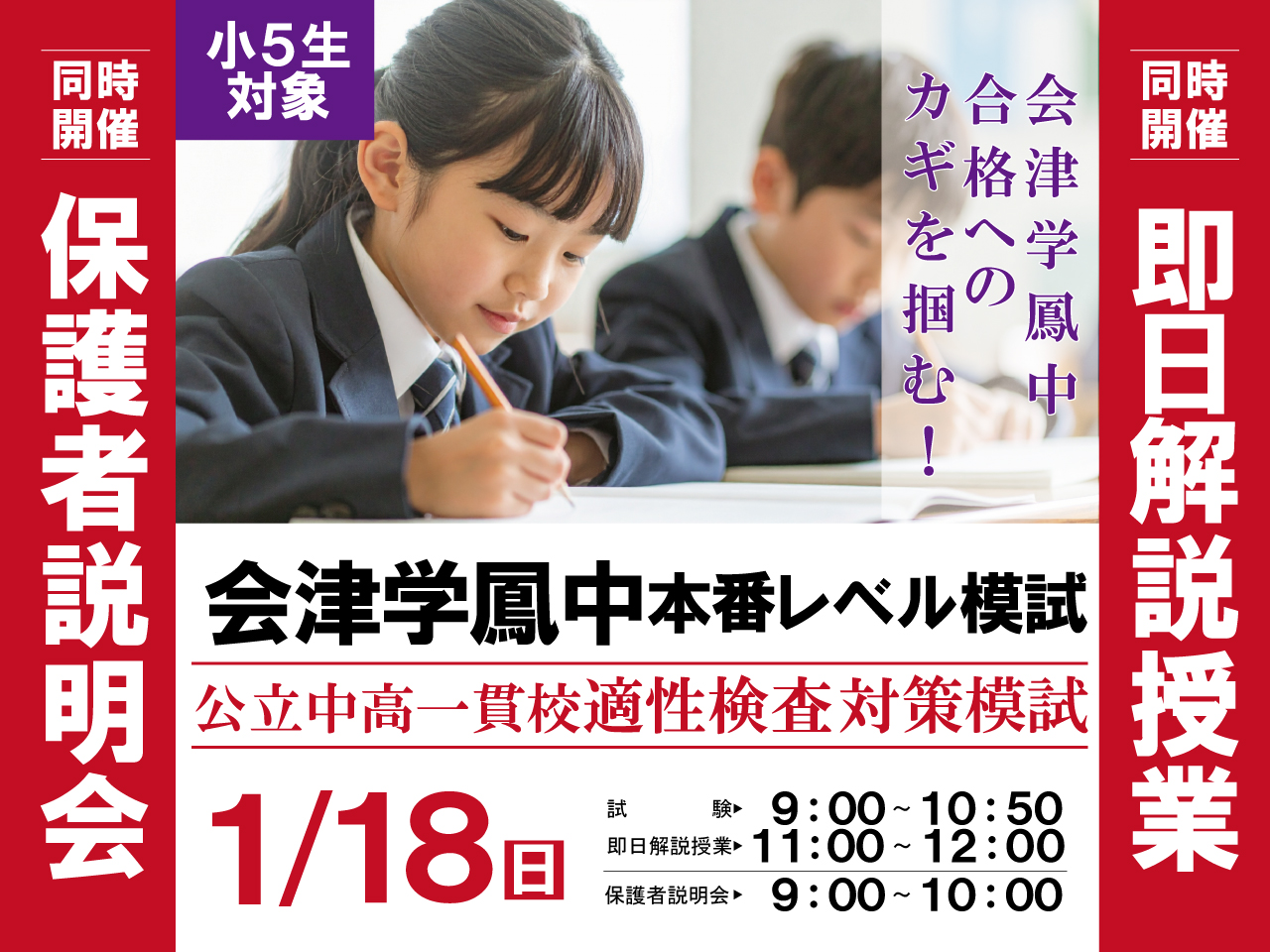 ★★★即日解説授業あり★★★会津学鳳中を目指す小5生の皆さん~1/18(日) 適性検査対策模試を実施します!~