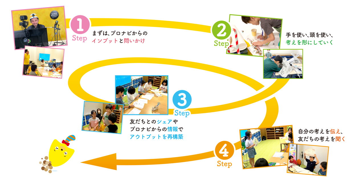 独自のメソッドに則り、4回を通じて、毎回バランス良くインプットと、アウトプットを配置することで、徐々にテーマへの理解を深めつつ、ユニークなアウトプットにつなげます。